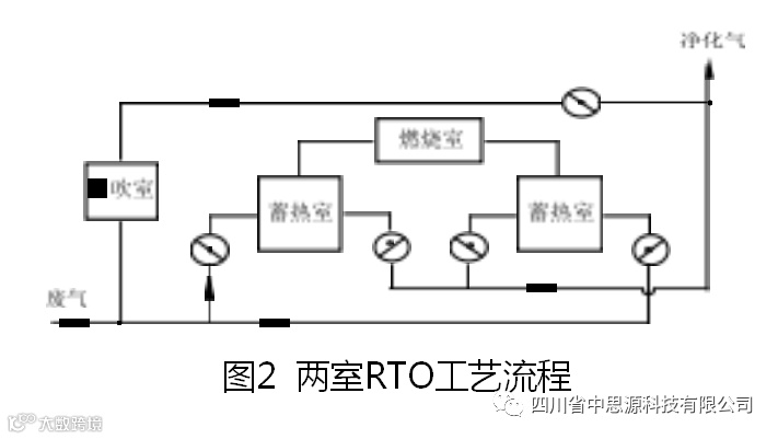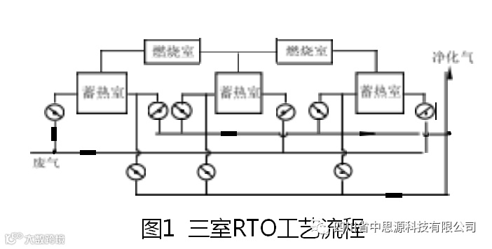 RTO的工艺原理是将有机废气通过内装高强度具优良 吸热性能的进口陶瓷材料的蓄热室而进入高温(760℃~ 800℃) 燃烧室,达高度净化后的高温气体通过另一蓄热室将其热量储存后低温(120℃~170℃) 气体从烟囱排 放。通过切换阀的开、关控制,蓄热-燃烧-蓄热轮换进行(每次约3分钟) ,净化达标经蓄热降温后的气体经烟 囱排放。