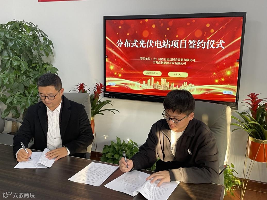 11月8日,大厂回族自治县国宏置业有限公司与宝利鑫新能源开发有限公司举行屋顶分布式光伏项目签约仪式,为打造低碳绿色环保园区的远大愿景打下夯实基础,共同为绿色发展注入强劲“新”动能。