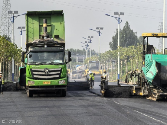 9月11日,栎鑫公司承建的双马路改建工程项目南北路段开展沥青铺设作业,现场,摊铺机将沥青均匀摊铺,随后压路机对新铺沥青层进行压实,工人们顶着高温,仔细填补路面边角缝隙,确保每一寸路面都更加坚实。
