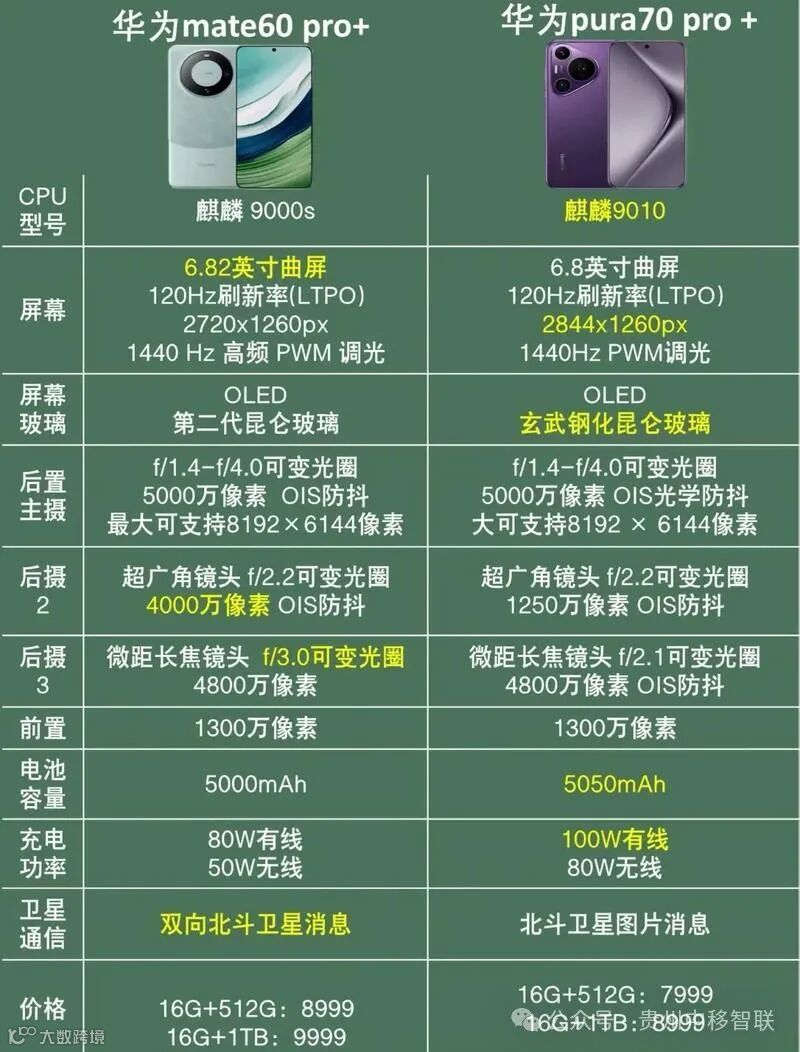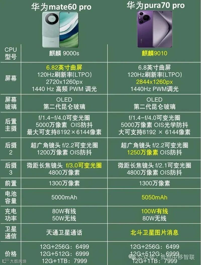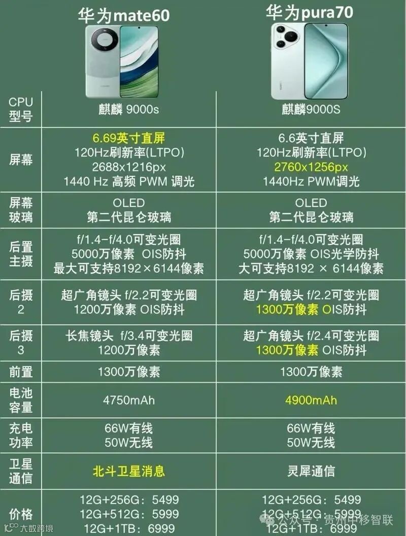 华为Mate60 VS 华为Pura70