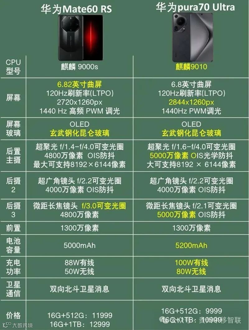 华为Mate60RS VS 华为Pura70Ultra