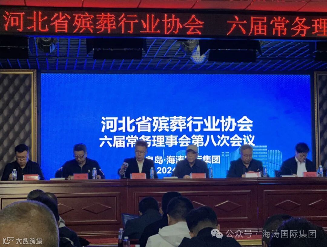 2024年4月24日河北省殡葬行业协会六届常务理事会第八次会议在秦皇岛海涛国际集团召开。参加会议并位于主席台的领导有:河北省殡葬行业协会会长王六一、党支部书记兼常务副会长段永昌、赵志国,副会长杨宝祥、李洪、隋昌宏,参加会议的还有监事长苗龙兴、顾问以及全体常务理事等约60人出席了本次会议,本次会议由常务副会长、古中山陵园董事长赵志国主持。