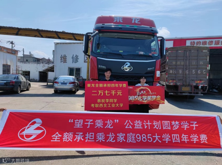 “这三年来,多亏了这台乘龙车,让家里有了可观的收入,为孩子创造了好的学习条件。孩子也很争气,今年考上了华中科技大学,还拿到了‘望子乘龙’计划资助的本科全额学费,非常庆幸当初购买乘龙卡车的明智选择。”