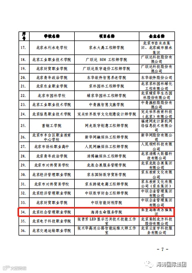 “海涛服务学院”是北京市教委、北京市人社局为贯彻落实国务院《国家职业教育改革实施方案》申报的特色高水平骨干专业(群)和实训基地(工程学院、艺术技能大师工作室),由北京社会管理职业学院与秦皇岛海涛集团共同申报的海涛服务学院。