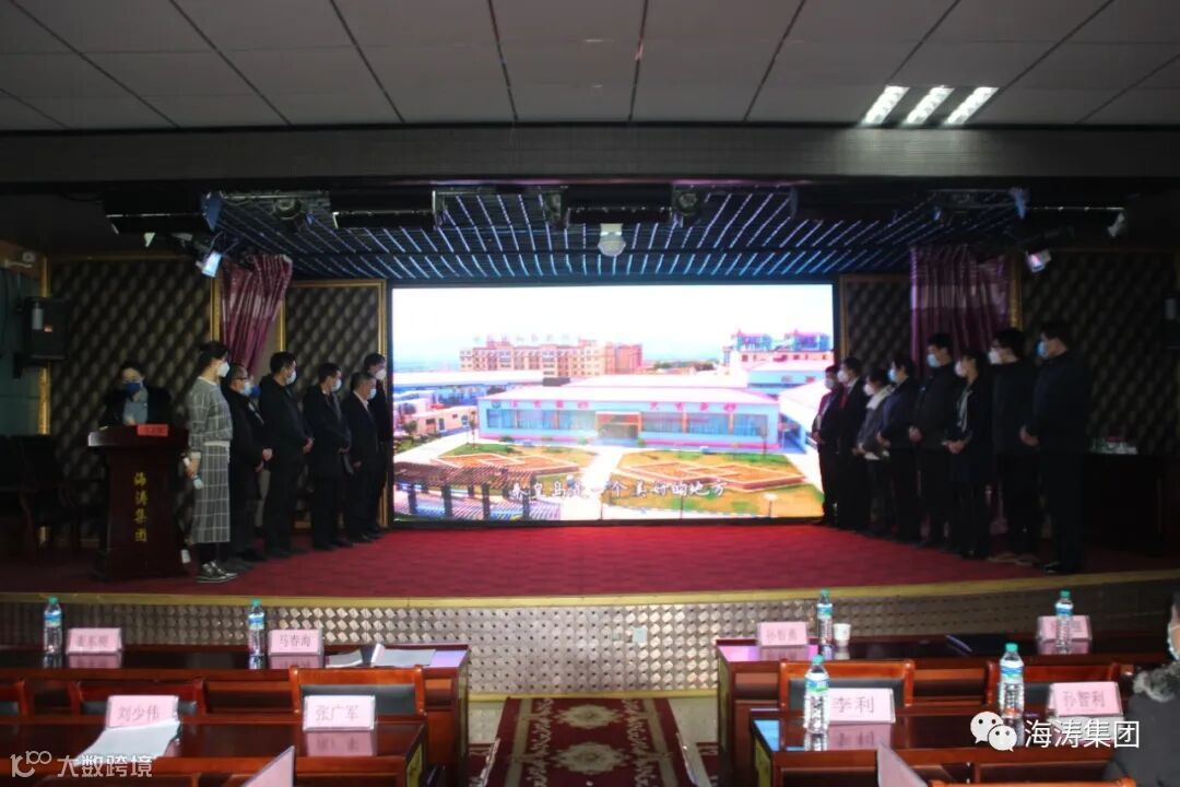 由海涛集团公司领导班子带领公司全体员工合唱公司厂歌《海涛之歌》