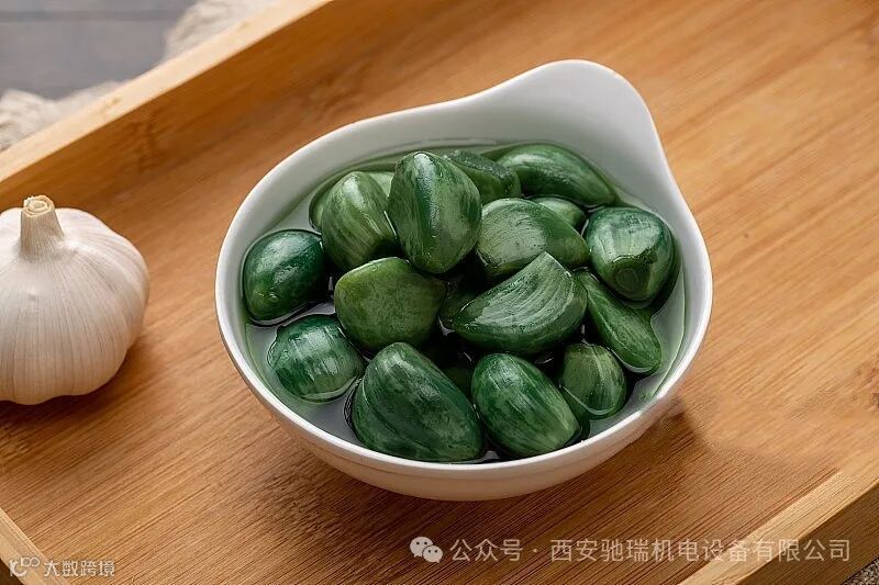 泡腊八蒜是一道主要流行于北方,尤其是华北地区的传统小吃,是腊八节节日食俗。在阴历腊月初八的这天来泡制蒜。其实材料非常简单,就是醋和大蒜瓣儿。做法也是极其简单,将剥了皮的蒜瓣儿放到一个可以密封的罐子,瓶子之类的容器里面,然后倒入醋,封上口放到一个冷的地方。慢慢地,泡在醋中的蒜就会变绿,最后会变得通体碧绿的,如同翡翠碧玉。