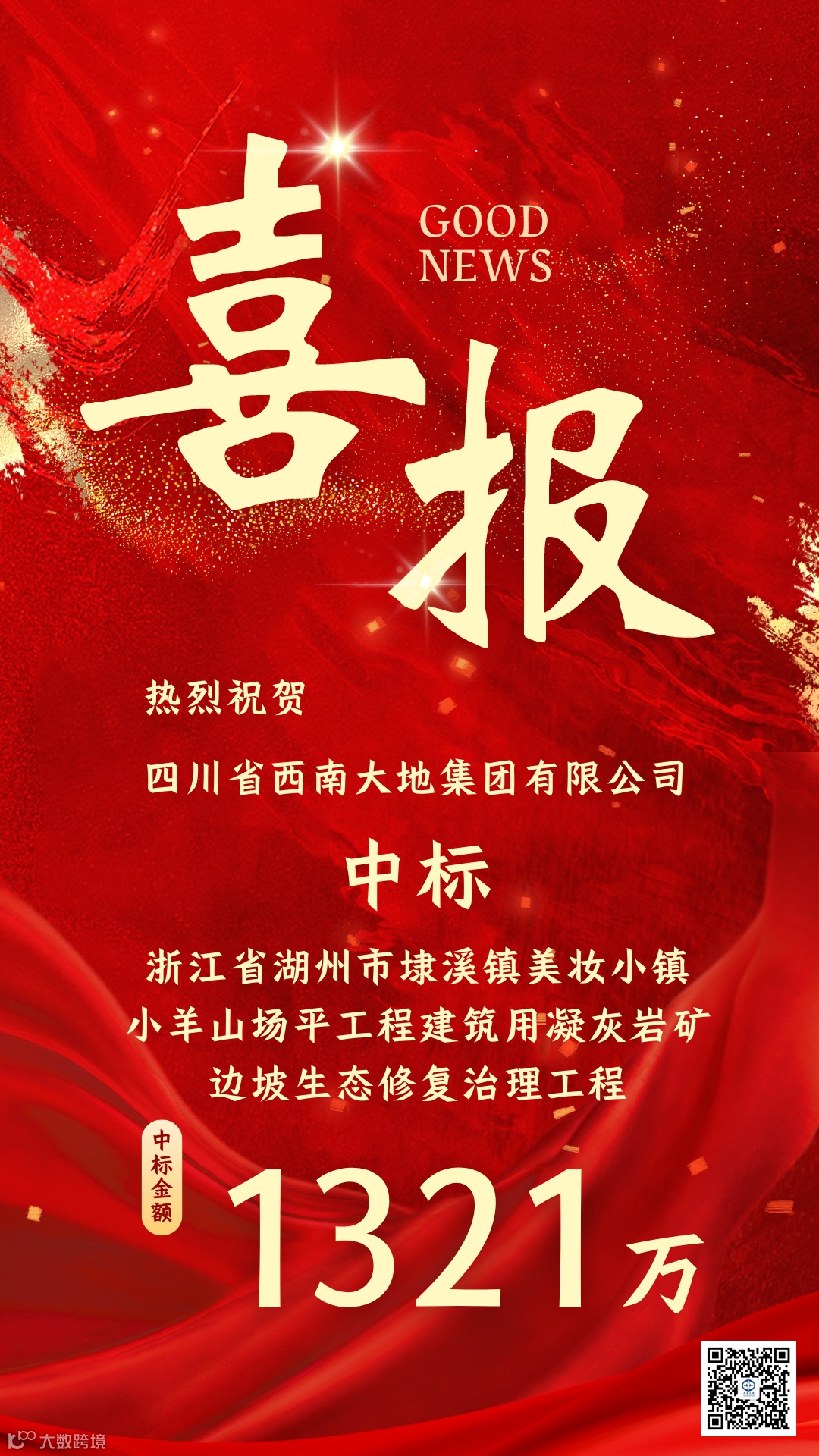 导读:祝贺西南大地中标浙江省埭溪镇美妆小镇小羊山场平工程建筑用凝灰岩矿边坡生态修复治理工程项目