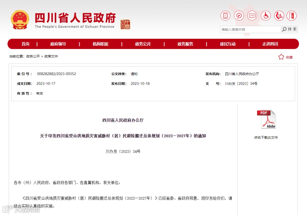 四川省进一步加大防汛减灾和地质灾害力度,省政府印发《四川省地质灾害全域综合整治三年行动计划(2021—2023年)》: