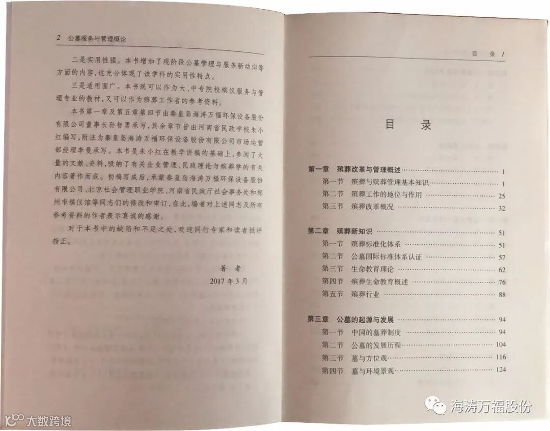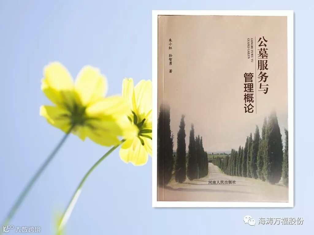 由秦皇岛海涛万福环保设备股份有限公司董事长兼总经理孙智勇、河南省民政学校朱小红共同编著的《公墓服务与管理概论》,经北京社会管理职业学院、河南省民政厅社会事务处和郑州市殡仪馆等同志们的修改和审订,于2017年3月由河南人民出版社出版发行。