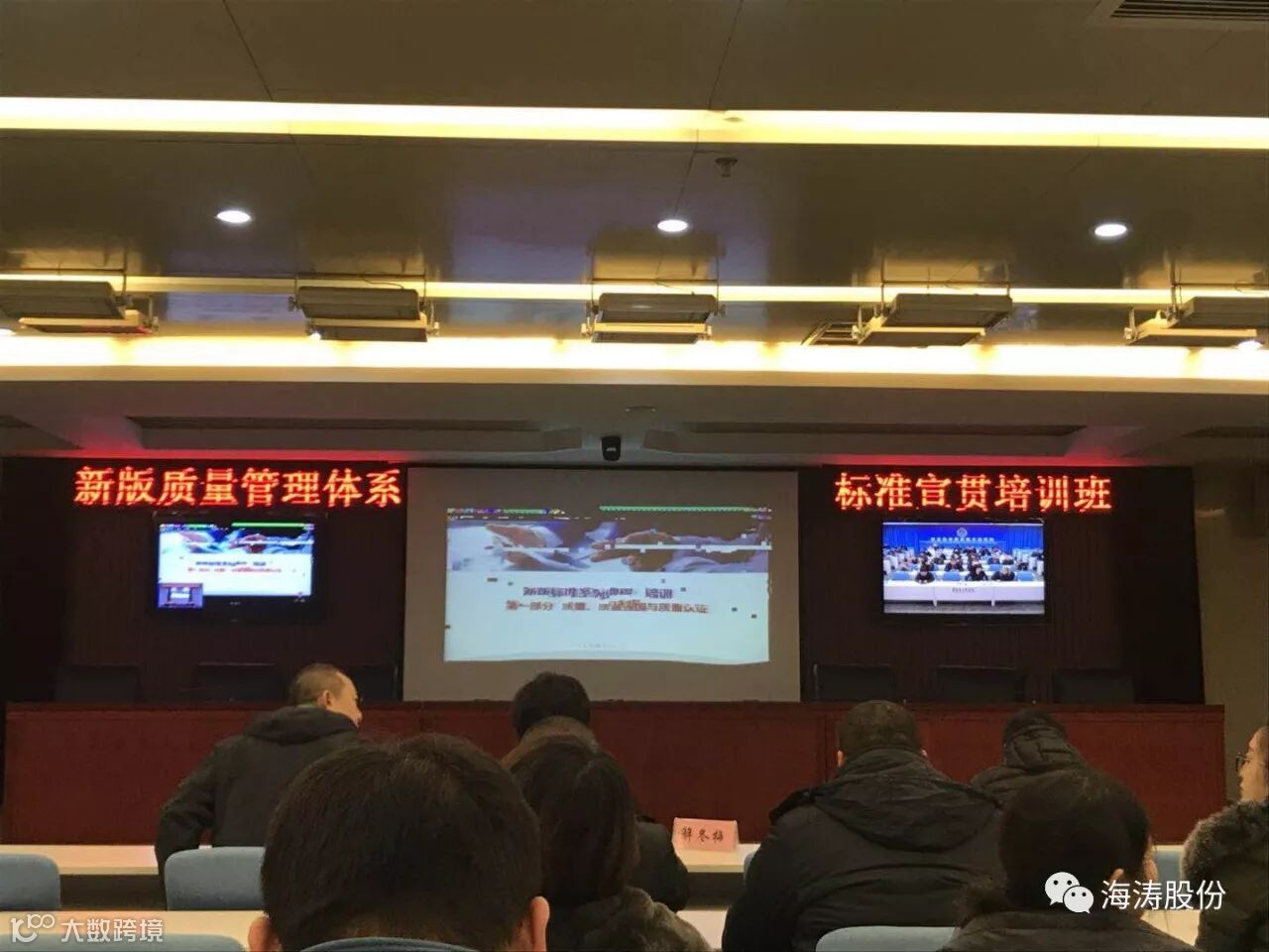 2017年12月14日上午9点,由河北省质监局组织,在秦皇岛市质量技术监督管理局召开“新版质量管理体系标准宣贯”培训班,本次培训为视频授课。主会场在石家庄,设有秦皇岛、唐山等分会场。共2040人参加此次培训班。秦皇岛分会场由解冬梅主持,市、区县质监相关业务归口人员、相关名优企业代表参加。培训班由标准起草人之一王梅老师进行授课。课程内容分为两部分:一、国务院近两年对质量标准体系建设做出了哪些工作。二、对GB/T 9001-2016转版关键部分进行了介绍。海涛股份孙彦亮参加了此次培训。