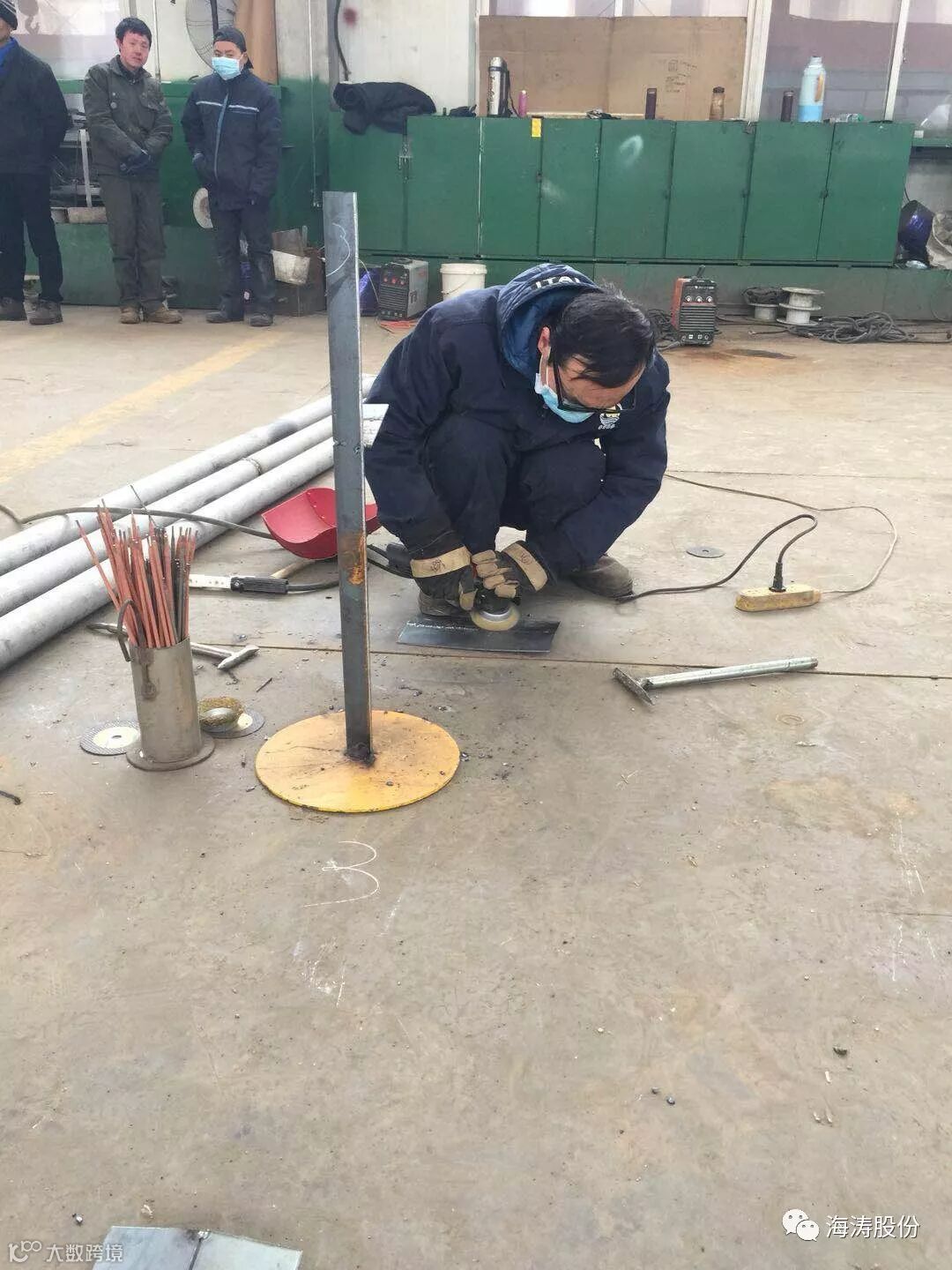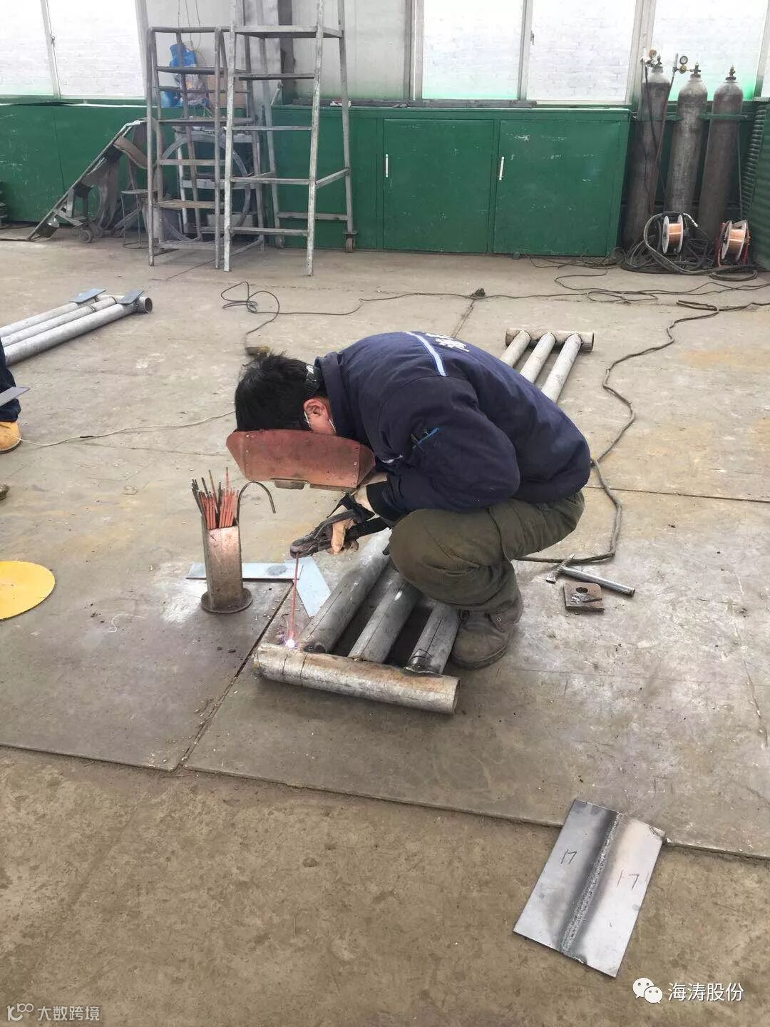 根据十九大工作报告中提出建设知识型、技能型、创新型劳动者大军,弘扬劳模精神,营造劳动光荣的社会风尚和精益的敬业风气,充分发挥职工技术技能人才在生产加工中的示范引领作用。本公司于2018年3月4日,在公司二车间举行“海涛梦、劳动美第一届职工大赛:电焊工技能大赛”和“海涛梦、“劳动美第一届职工大赛:瓦工技能大赛”。