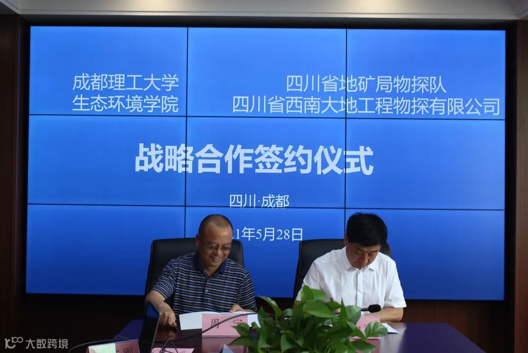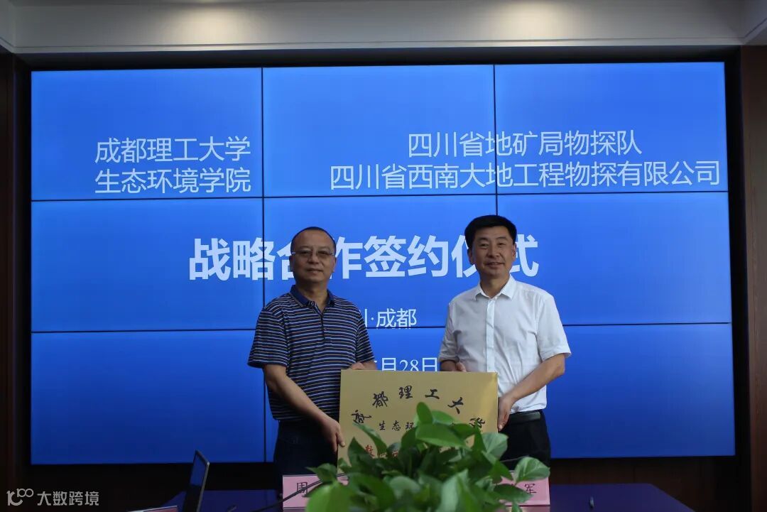 物探队队长周宁和成都理工大学生态环境学院院长裴向军代表双方签署战略合作框架协议。