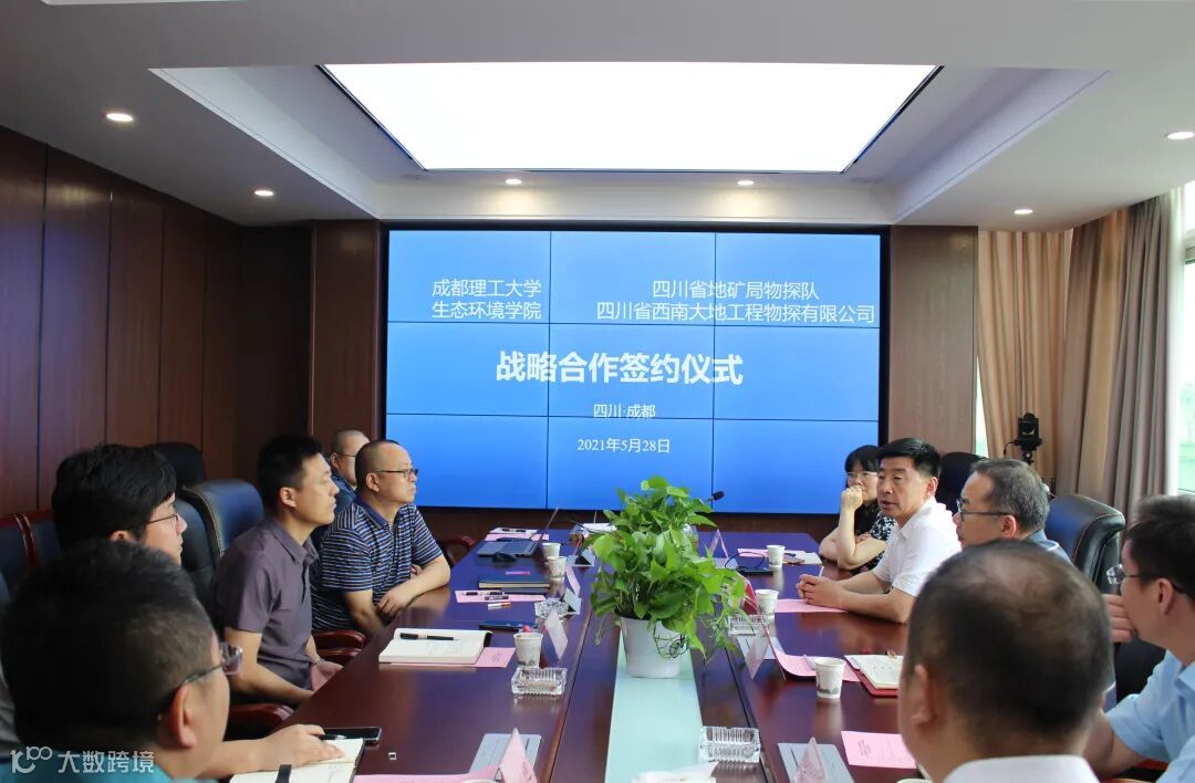 签订仪式上,物探队队长周宁和成都理工大学生态环境学院院长裴向军分别介绍了校企双方的改革发展情况、当前重点战略部署和下一步的发展思路。双方就各自优势领域展开深入交流,并对下一步合作方式进行热烈讨论。