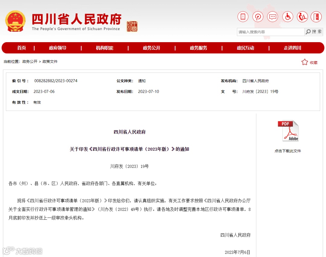 《四川省行政许可事项清单(2023年版)》