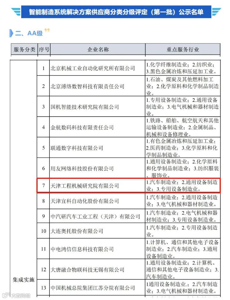 近期,天工院智能制造事业部申报了 智能制造系统解决方案供应商联盟组织的供应商服务类别评定,经过公开征集、企业申报、形式审查、专家评审等环节层层筛选,天工院智能制造事业部获得了“集成运维”类的AA级供应商资质。
