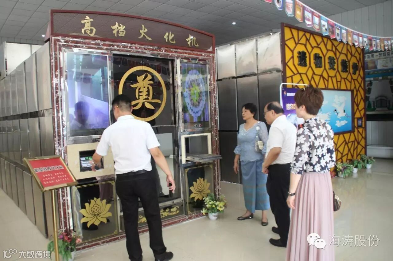 孙智勇董事长向柬埔寨总理夫人汪莉华女士介绍了公司企业文化、公司产品以及公司近几年的发展情况,并详细介绍了公司近几年来的经营状况和所取得的成绩以及今后的发展路线,同时对当前市场形势下所面临的挑战作出了分析。柬埔寨总理夫人参观了公司厂区、生产车间、实验室以及展厅等部门。海涛股份公司的独创产品引起了她的兴趣,特别是高档火化炉、遗物焚烧炉、十二生肖祭祀园以及室内公墓。
