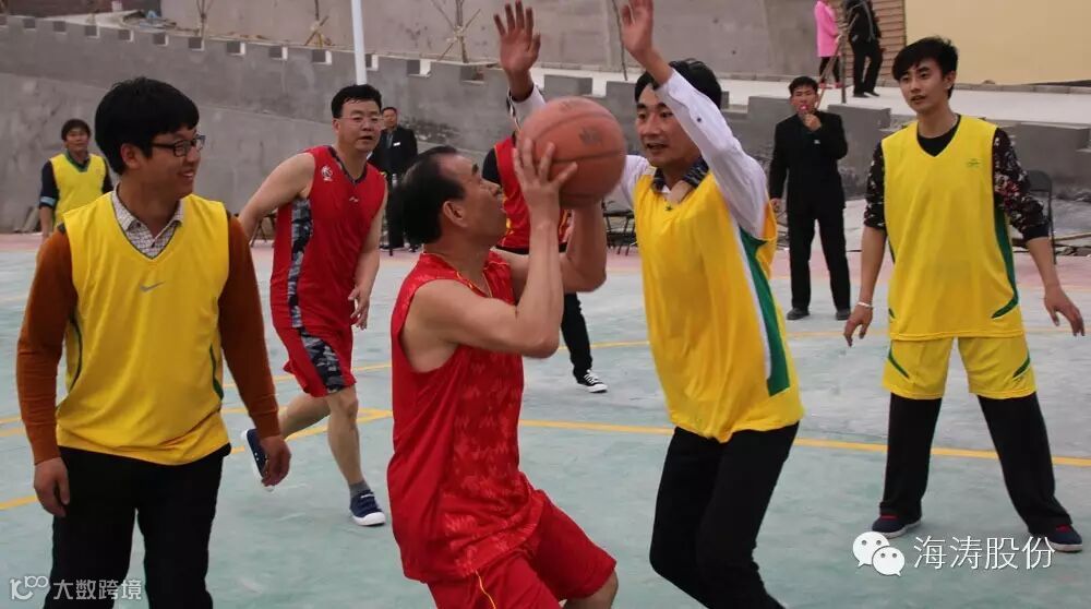 图为:会议结束后参会人员与海涛股份公司员工进行篮球比赛