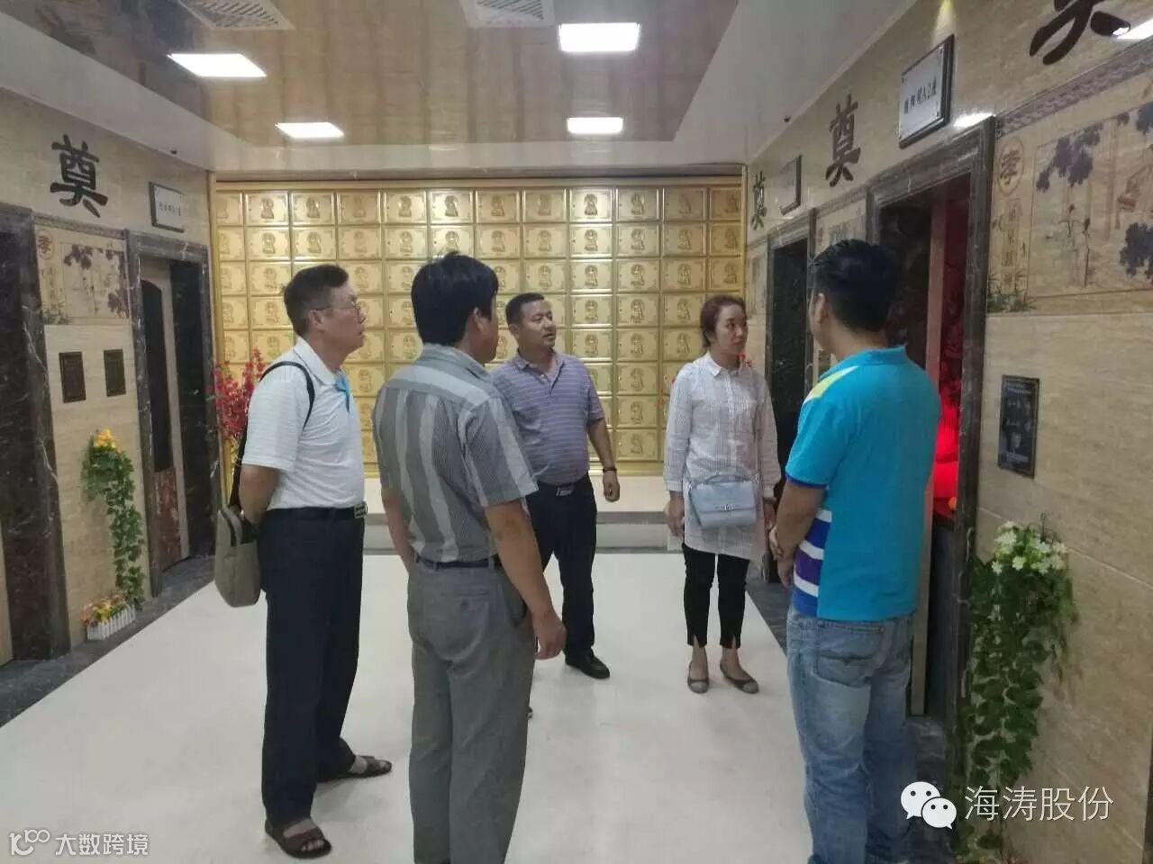 2016年10月15日,大庆市民政局冯建国局长,副调研员孟晓波,社会事务科科长郝洪颖,大庆市殡仪馆张庆和馆长;一行5人在秦皇岛海涛万福环保设备股份有限公司副总经理姜东明的陪同下,到访广东省河源市东源万福园公墓管理有限公司考察,销售副总经理张广军受万福园公墓总经理孙海涛的委托接待一行领导并将公墓各项设备为领导们做了详细的介绍。