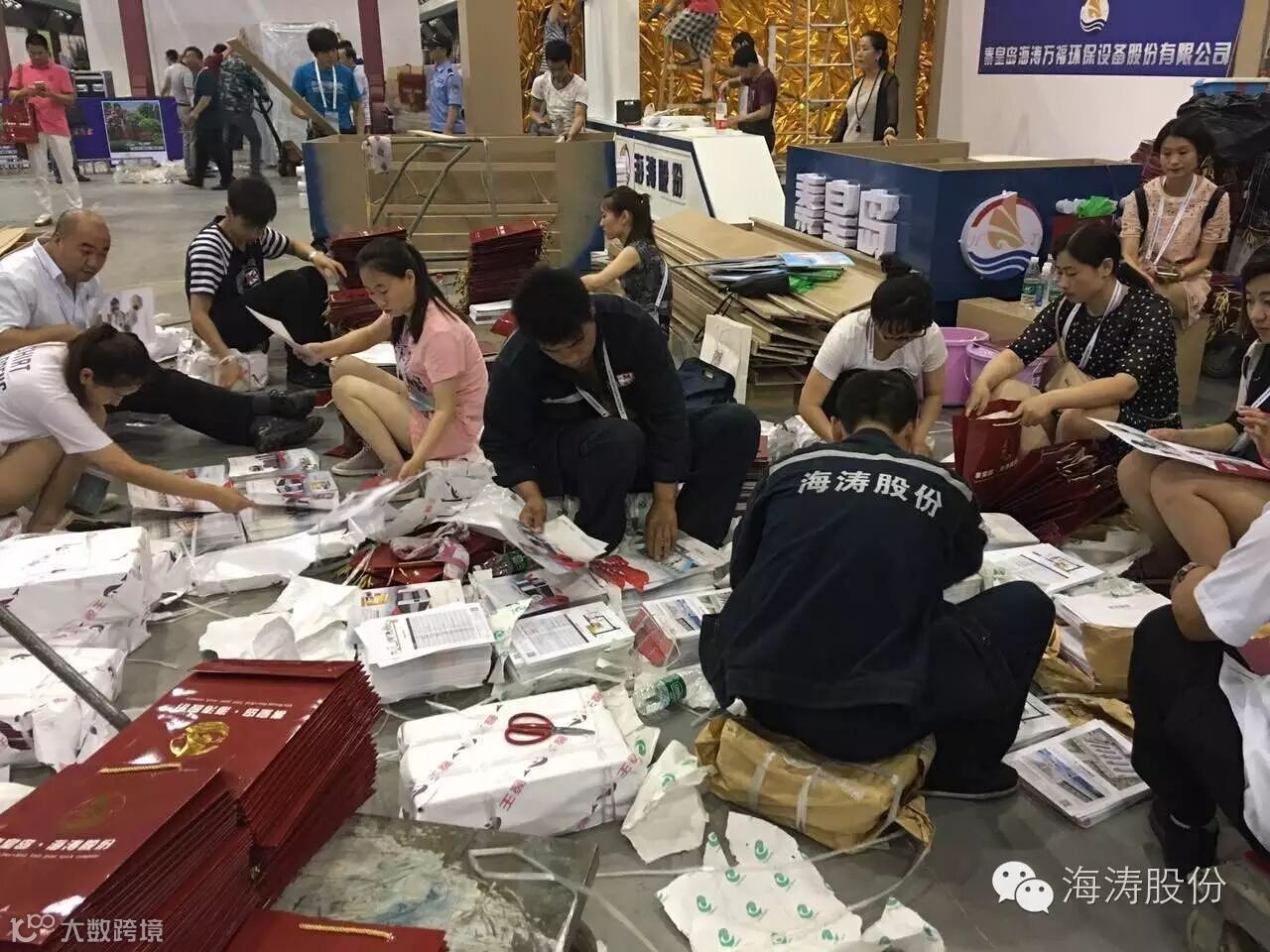 特别是在今天,博览会的前一天,所有的海涛人还辛苦的奋斗在布展一线。在备展期间,我们可爱的海涛人每天用自己勤劳的双手夜以继日的忙碌,无论酷暑与闷热的气候也从未阻挡过我们前进的脚步。即使是节日无法与家人团聚,海涛人依然无怨无悔。无论从安装调试设备还是参展工作的细枝末节等等,不管做什么我们总是保质保量的完成,不仅有效率也有保障。我们带着平时工作中努力拼搏的精神,坚定不移的信念融入备展中,直到今天我公司展区的所有设备均已安装调试完毕,可以正常使用。让我们向工作在一线他们道一声:你们辛苦了,向你们致敬。相信有你们的努力,海涛股份的参展会更加顺利,在你们辛勤汗水的滋润下,凭借我们强大的产品阵容及先进的技术,海涛股份一定会在长沙博览会技压群雄,获得满堂彩!明天,让我们拭目以待!