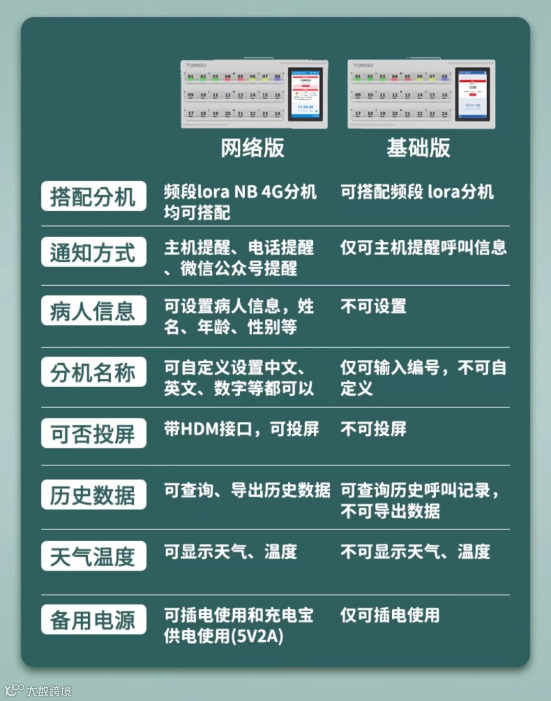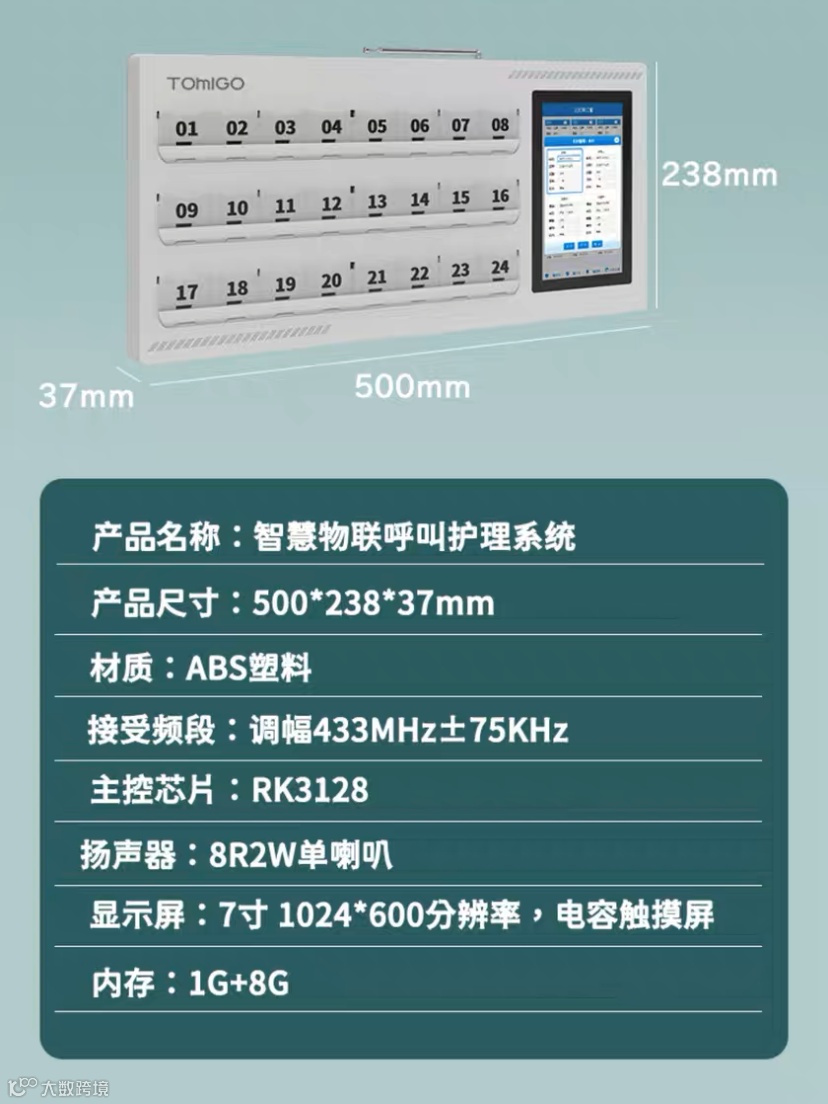物联网呼叫护理系统产品参数如下: