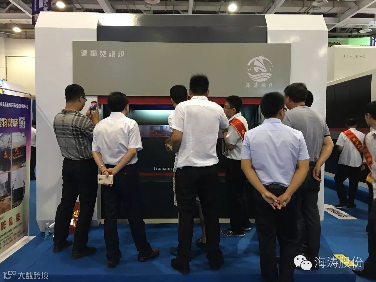 今天,我们迎来了又一次客流高峰,尽管现场人头攒动,海涛人耐心的讲解、热情的接待,赢得了驻足于海涛股份展区来宾们的一致好评,“全国首创、海涛独创”的高科技产品就在这里,十二生肖祭祀园、遗物焚烧炉、高档智能火化机、尾气后处理设备前挤满了前来咨询的人.
