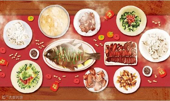 年夜饭是很讲究的,每一道菜品都要有吉祥的寓意。热菜一般要有鸡、有鱼,寓意“吉祥如意”“年年有余”。但是这条鱼不能在除夕夜吃完,一定要留下一点,才全了这句吉祥话的好意头。