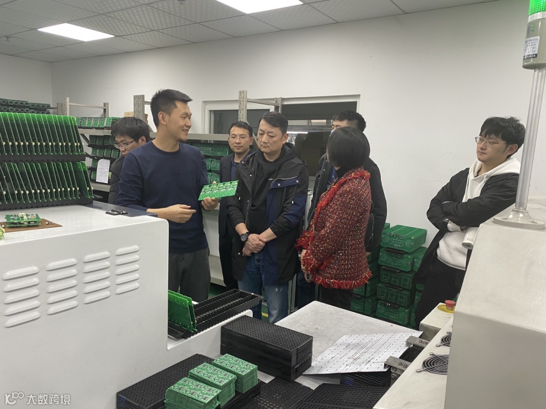 驰云科技董事长周黎(右一)陪同石马河街道领导一行参观智能硬件工程技术中心