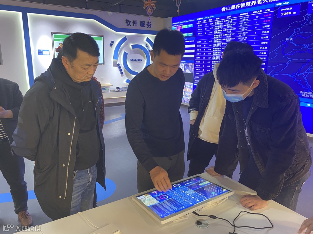 首先,丁院长一行在公司领导陪同下参观了产品展示厅。参观过程中,董事长周黎和首席运营官周千秋分别就智慧医养软硬件一体化解决方案和各项养老服务项目做了详细介绍,期间,各位领导对公司智慧医养一站式解决方案颇为赞许。尤其在了解了贵州青山漫谷养老项目后,丁院长一行高度赞扬,认为借助科技的力量发展新的养老服务模式是十分必要的,并表示对我司发展前景非常看好。