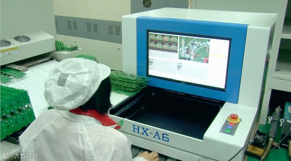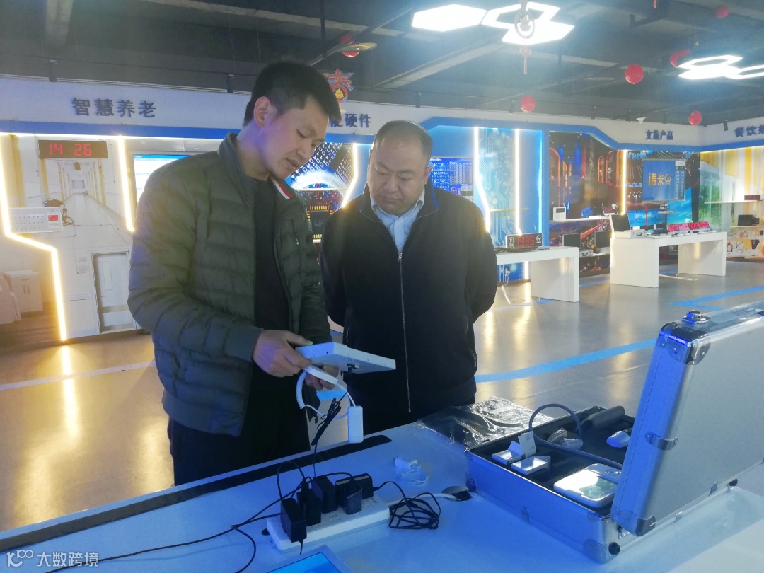 驰云科技董事长周黎(右边)向联通物联网王总(左边)介绍主板贴片