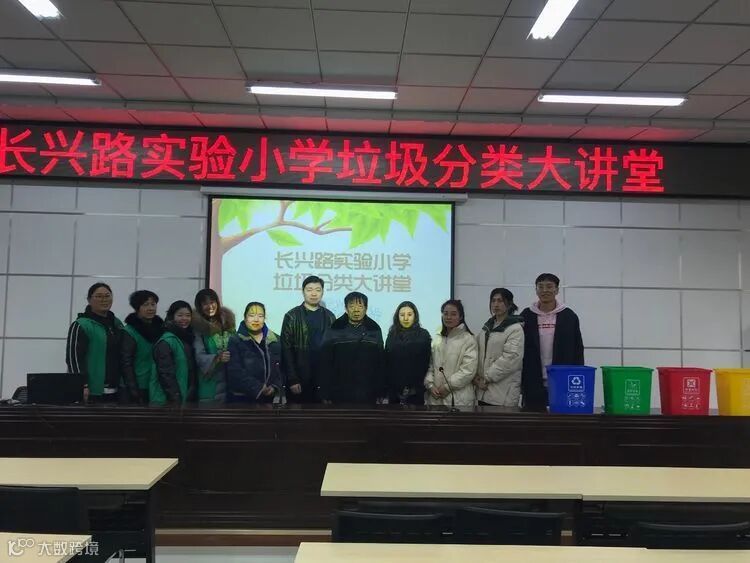 垃圾分类走进长兴路实验小学,向学生们展示视频和认识四分类垃圾桶