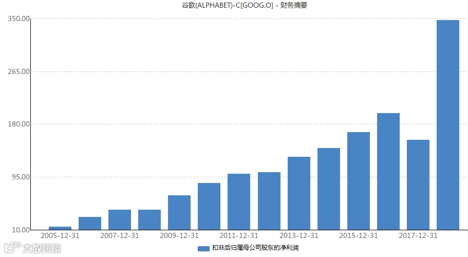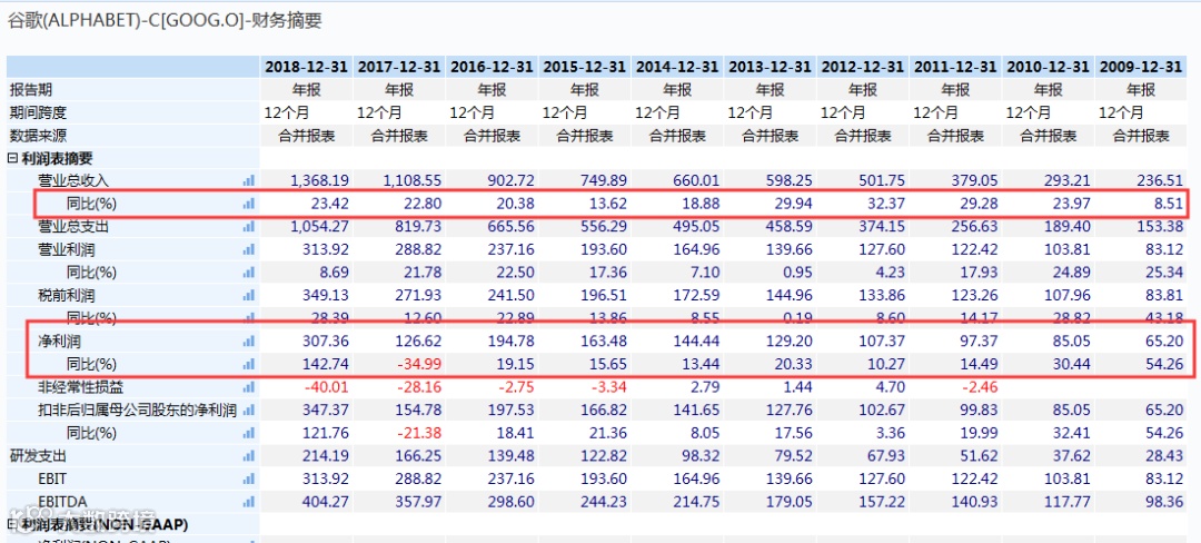 谷歌上市后,财报就一直表现突出,绝大部分年份保持超市场预期的增长: