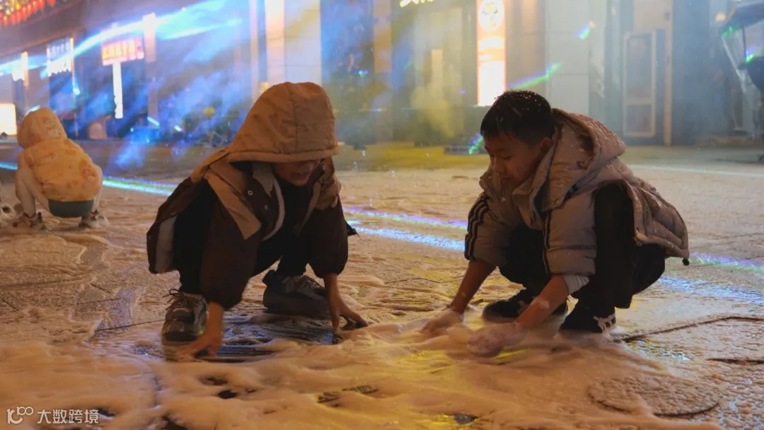 现场,不少市民带着小朋友过来看“雪”。在“雪景”下,小朋友们乐开了花,在“雪景”里手舞足蹈,现场欢声笑语,人们沉浸在冬日浪漫的氛围中。