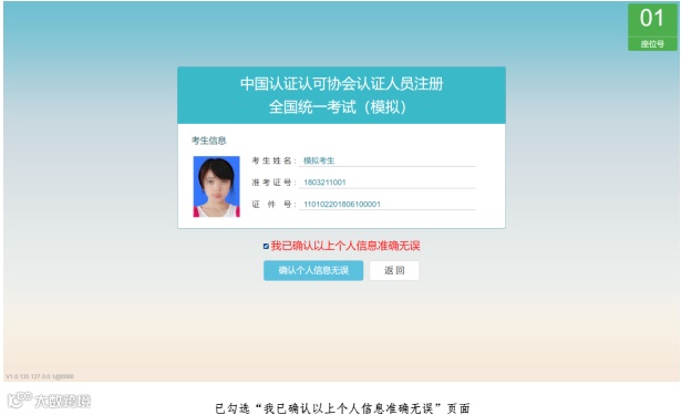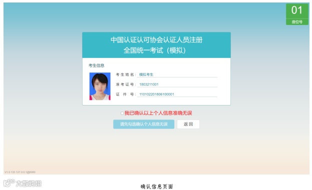 确认考试信息页面