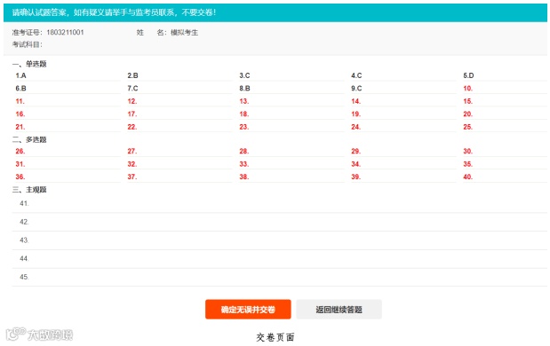 交卷页面