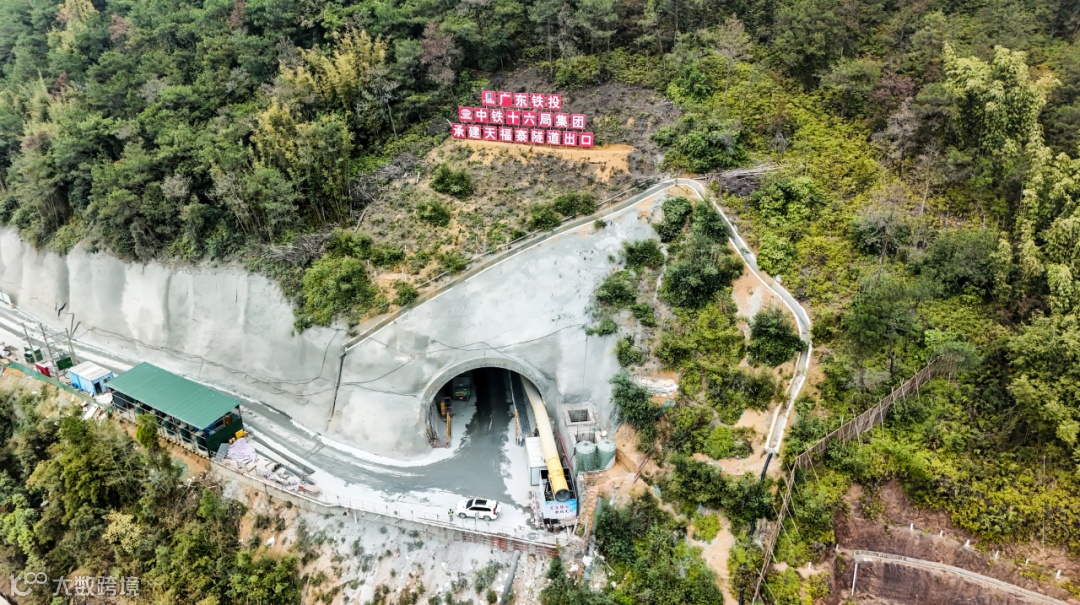 天福寨隧道位于广东省云浮市境内,全长1127.57米,最大埋深约100米。隧道下穿高压电塔、断层带和浅埋段等多种风险源,施工过程中,建设团队构建“超前地质预报、动态设计、精准支护”的一体化技术体系,综合运用多种探测与监测技术,确保隧道开挖安全平稳推进。