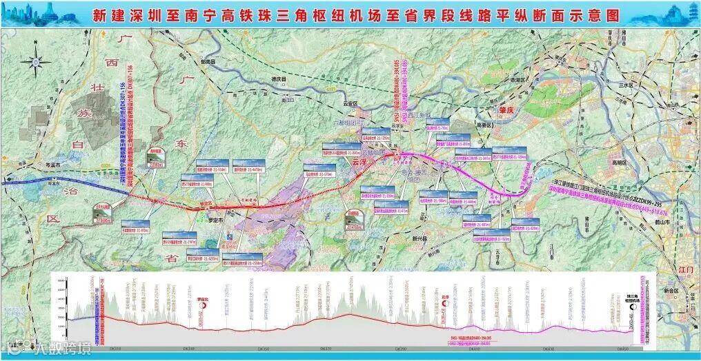 珠三角枢纽机场至省界段(142公里):设计速度350公里/小时,设云浮、罗定北2座车站。