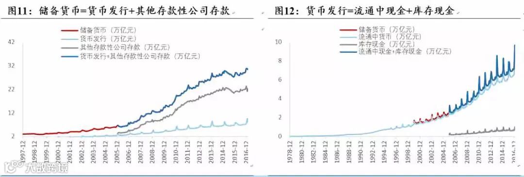 ①基础货币为在流通过程中沉淀下来的那部分货币。基础货币=货币发行+其他存款性公司在央行存款。其中货币发行=流通中货币+其他存款性公司库存现金;其他存款性公司在央行存款=法定存款准备金+超额存款准备金。不论以哪种形式存在,基础货币均意味着可无条件要求央行予以兑付的购买力。