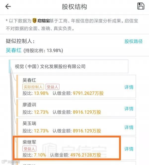 视觉中国股东柴继军,同时也是该公司实际控制人,目前,持有视觉中国7.1%的股份,位列第四位。