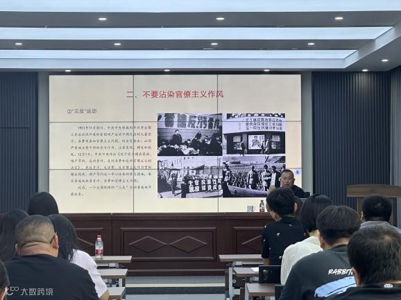 李主任围绕党的百年作风建设脉络,以理论联系实际的方式,为大家上了一堂生动的作风建设课。一是以“用延安作风打败西安作风”为核心,结合三湾改编、黄克功案讲作风根基;二是以“不要沾染官僚主义作风”为重点,借“两个务必”“三反”、刘青山张子善案强调拒腐防变;三是以“切实把我们的党风搞好”为目标,提《党内政治生活若干准则》、王仲案、“三讲”;四是以“八项规定一子落地,作风建设满盘皆活”为特征,解读相关教育及2023年《中国共产党纪律处分条例》修订,突出建设刚性。