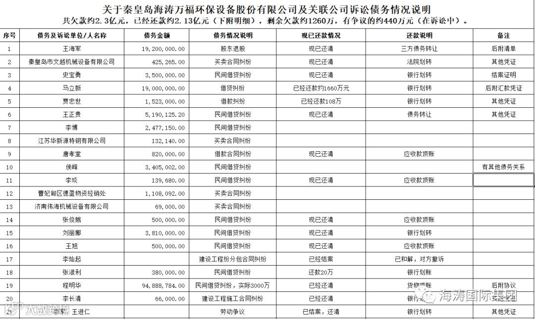 集团高层召开紧急会议,面对现实,稳扎稳打。一方面稳定军心解决旧事,一方面创新开拓谋求发展。功夫不负有心人,海涛用行动证明了创新求发展才是硬道理。集团曾负债2亿元,这个数字对于大部分企业来讲,无非是一个天文数字!但是海涛在三年疫情期间,在自然给予的艰难考验的时候,通过财务数字核实(详见附表),已基本全部偿清债款,能勇敢接受风雨的洗礼,在风雨中屹立不倒,这就是企业的实力!