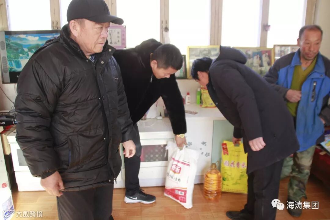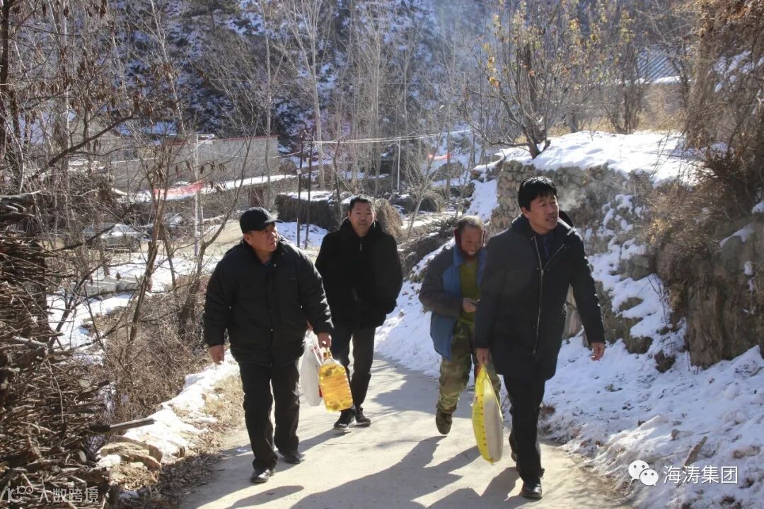 凛冽的寒风阻挡不了送关怀的脚步,严寒的深冬冷却不了送温暖的爱心。为切实加强对贫困户的联系帮扶,为了让贫困群众渡过一个欢乐、祥和的新年。2019年12月30日,秦皇岛海涛万福集团党支部书记马春海、副总经理姜东明、工会代表李利、团支部代表池金满到青龙满族自治县双山子镇康杖子村羊圈沟走访慰问贫困户王青武活动,为贫困家庭送去了大米、白面、油等慰问品并为贫困家庭销售自家产苹果70箱。送上了新年的祝福和问候,将党和非公企业的深切关怀送到贫困群众的心坎上。