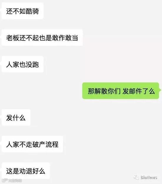 此外,李刚的另一家公司,与小蓝单车一起办公的野兽骑行,除了高管外,其余员工全部遣散(劝退)。