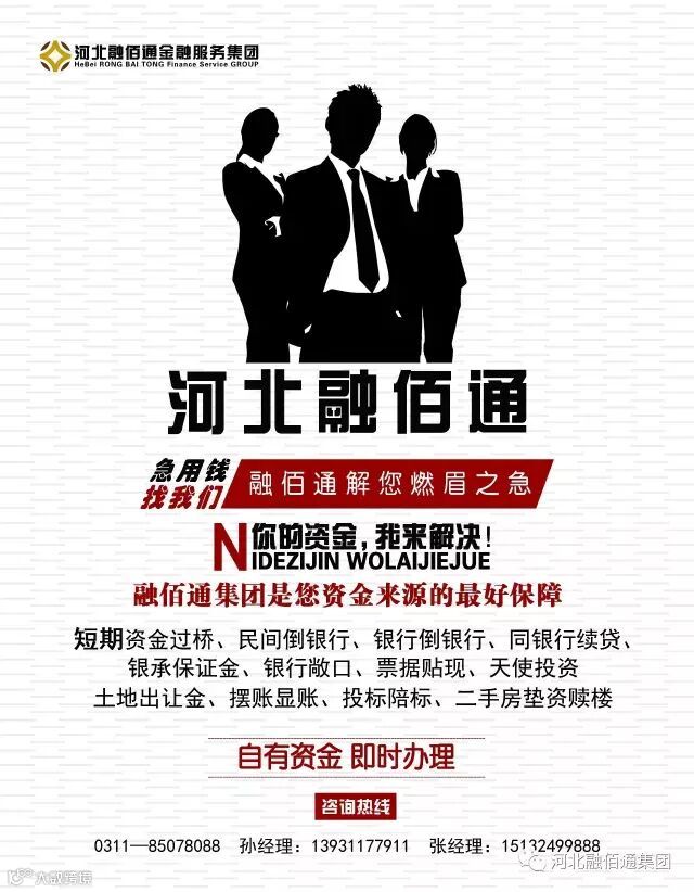 融佰通立足京津冀,面向全中国,不断追踪市场需求,创新金融服务,通过发挥高效的专业化团队队伍的能动性,充分利用丰富的金融资源,助力企业稳健发展,实现融佰通、银行和企业的多赢格局,架起银行和企业之间的合作桥梁,助推社会经济良性发展。让金融理念走进每个人心里,最终理想是让金融不再成为需要。