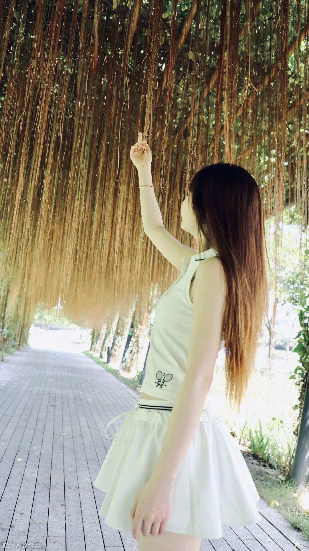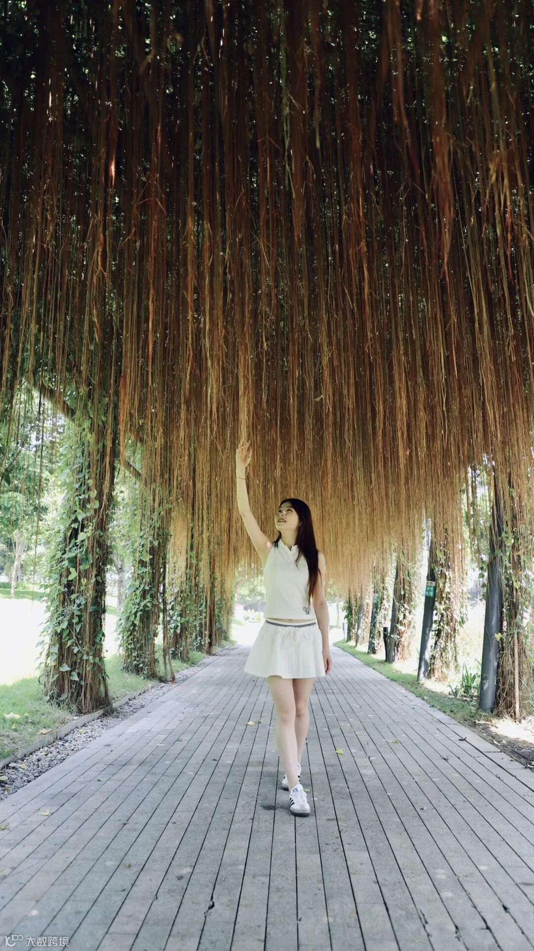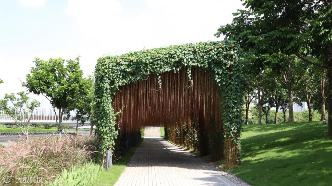 廊架顶部的茂密枝叶与垂悬气根构成天然遮阳篷,为游客提供清凉庇护。漫步或小憩于此,您可尽情欣赏水岸风光,远离夏日酷热,感受自然与舒适的完美融合。