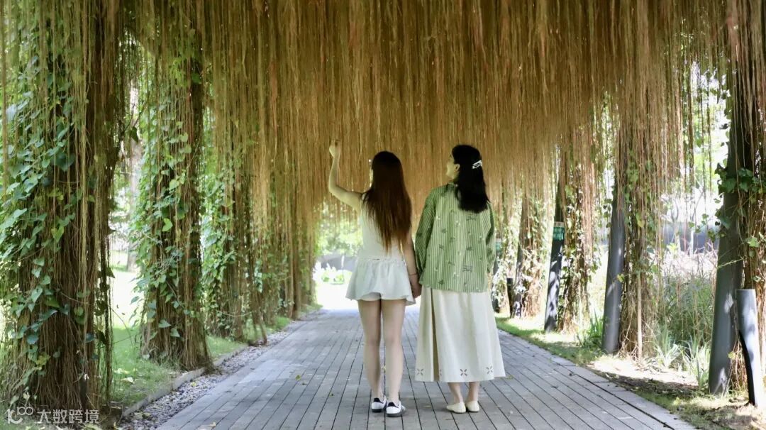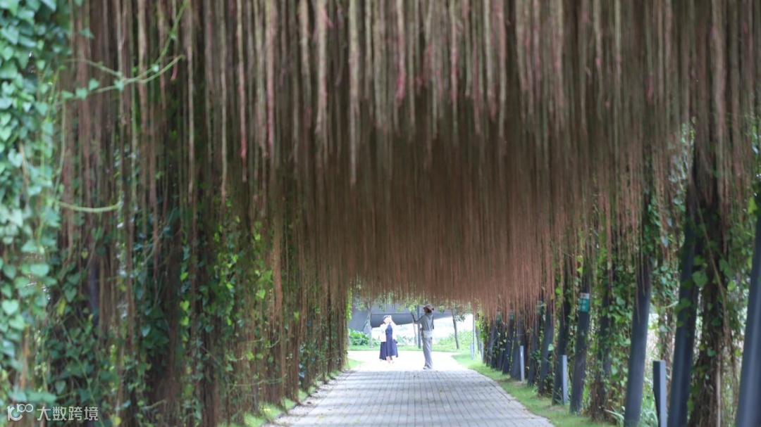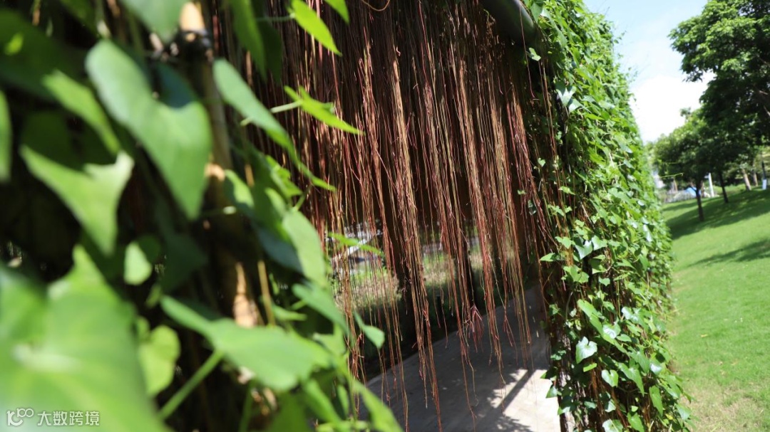 在深圳前海桂湾公园,沿着蜿蜒的亲水步道,一道独特的夏日风景正悄然绽放——临水而立的现代钢结构廊架上,锦屏藤以垂落的红褐色气根,编织出一幅灵动的自然画卷。漫步于此,驻足片刻,您将沉浸在自然与现代交融的浪漫氛围中,感受清风拂过、光影摇曳的诗意之美。