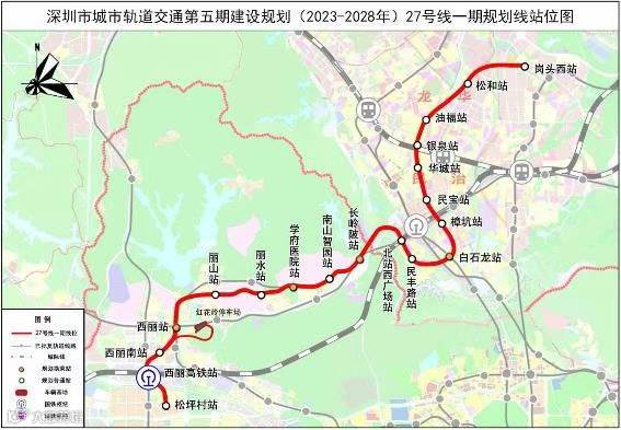 作为深圳市轨道五期项目,地铁27号线是前海至坂雪岗的一条普速线路,主要承担前海、南山与龙华轴向轨道联系功能,缓解主要交通走廊及跨关交通压力,实现前海、南山中心与龙华中心45分钟通达的规划目标。