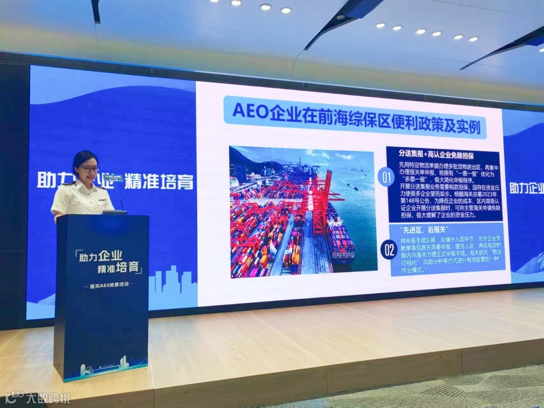 7月23日,由前海管理局、前海海关、蛇口海关联合主办、前海综保区开发运营公司承办的“助力企业、精准培育”海关AEO资质培训活动在前海国际人才港举办。本次活动旨在宣介全世界各国(地区)公认的全球贸易“金字招牌”AEO(经认证的经营者)制度、认证标准、程序以及有关便利措施,吸引近60家各类进出口相关企业、百余位企业代表参与。