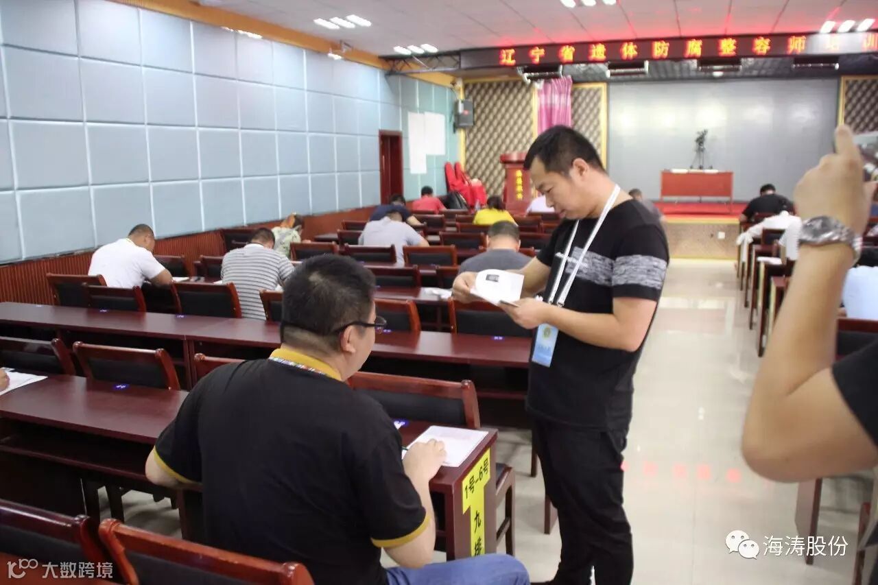 海涛国际集团2017年5月24日,今天是培训班。 培训的第四天,紧张的学习课程将要结束,但是学员们并不轻松。因为学员们要面临着遗体防腐师和遗体整容师的考试,检验这几天的学习成果。