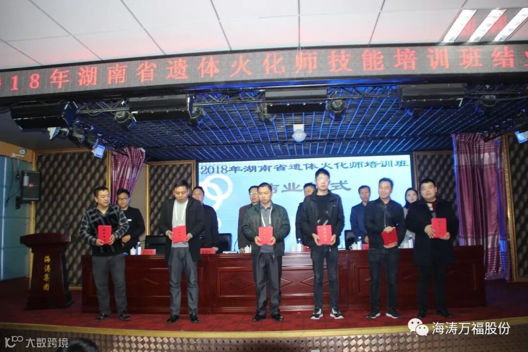 2018年10月26日,在秦皇岛海涛集团大会议室举办了2018年湖南省《遗体火化师》技能培训班结业典礼。