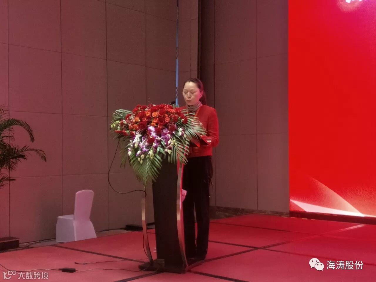 湖南省民政厅陈慈英副厅长为在抽奖环节中有幸获得特等奖的秦皇岛海涛股份公司副总经理李曼颁发了奖品